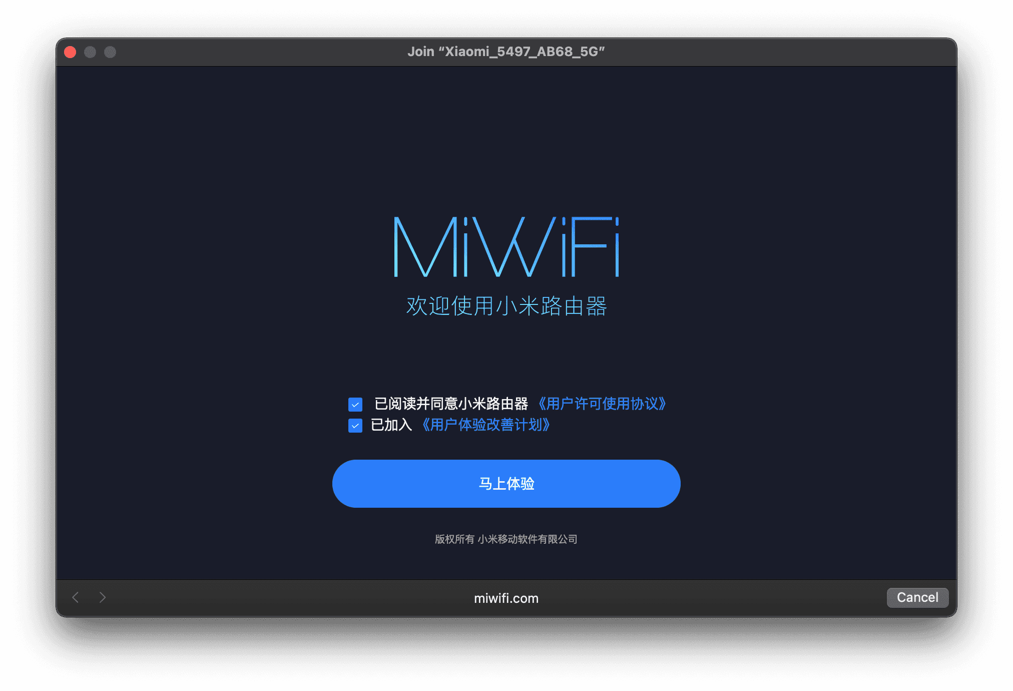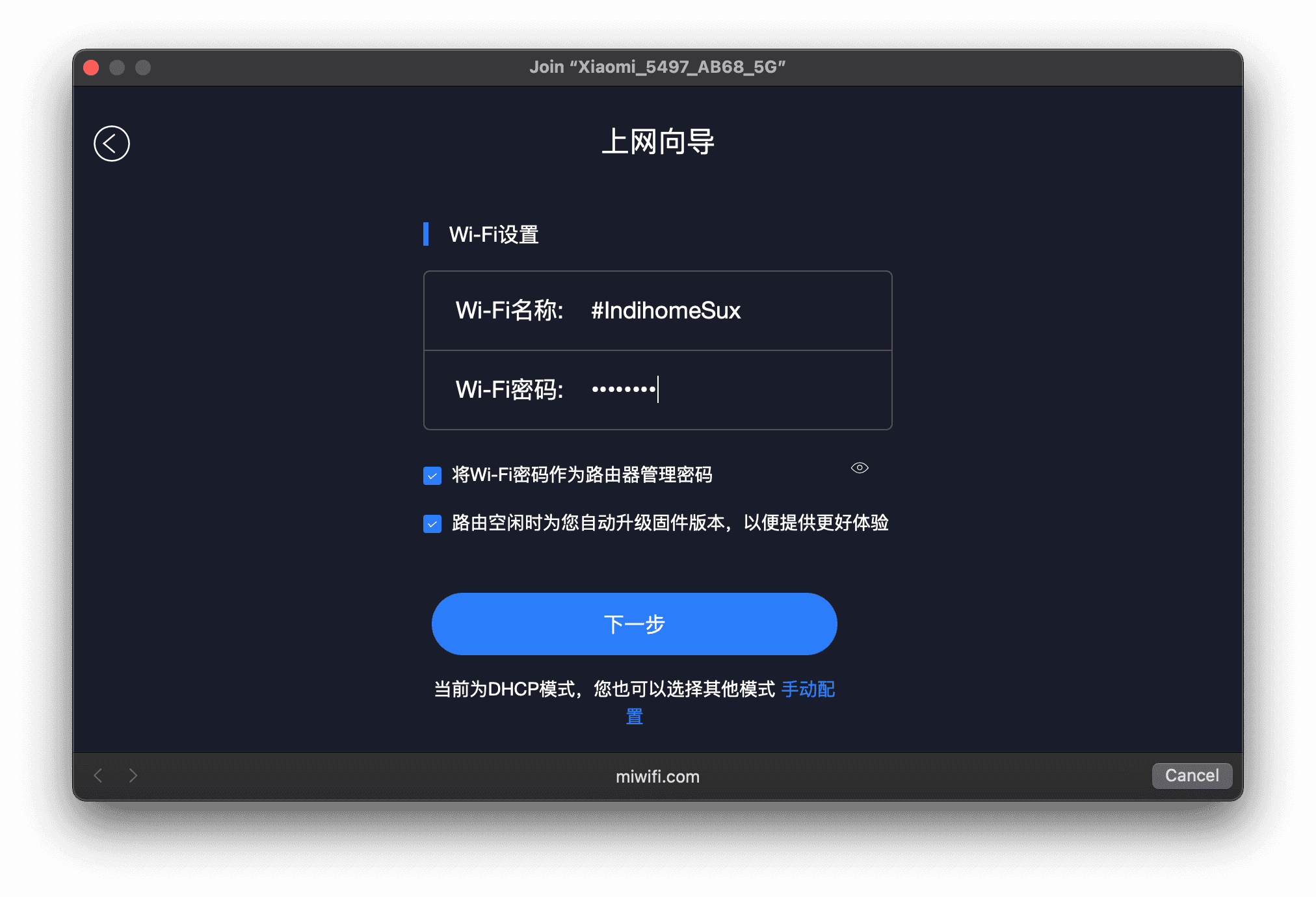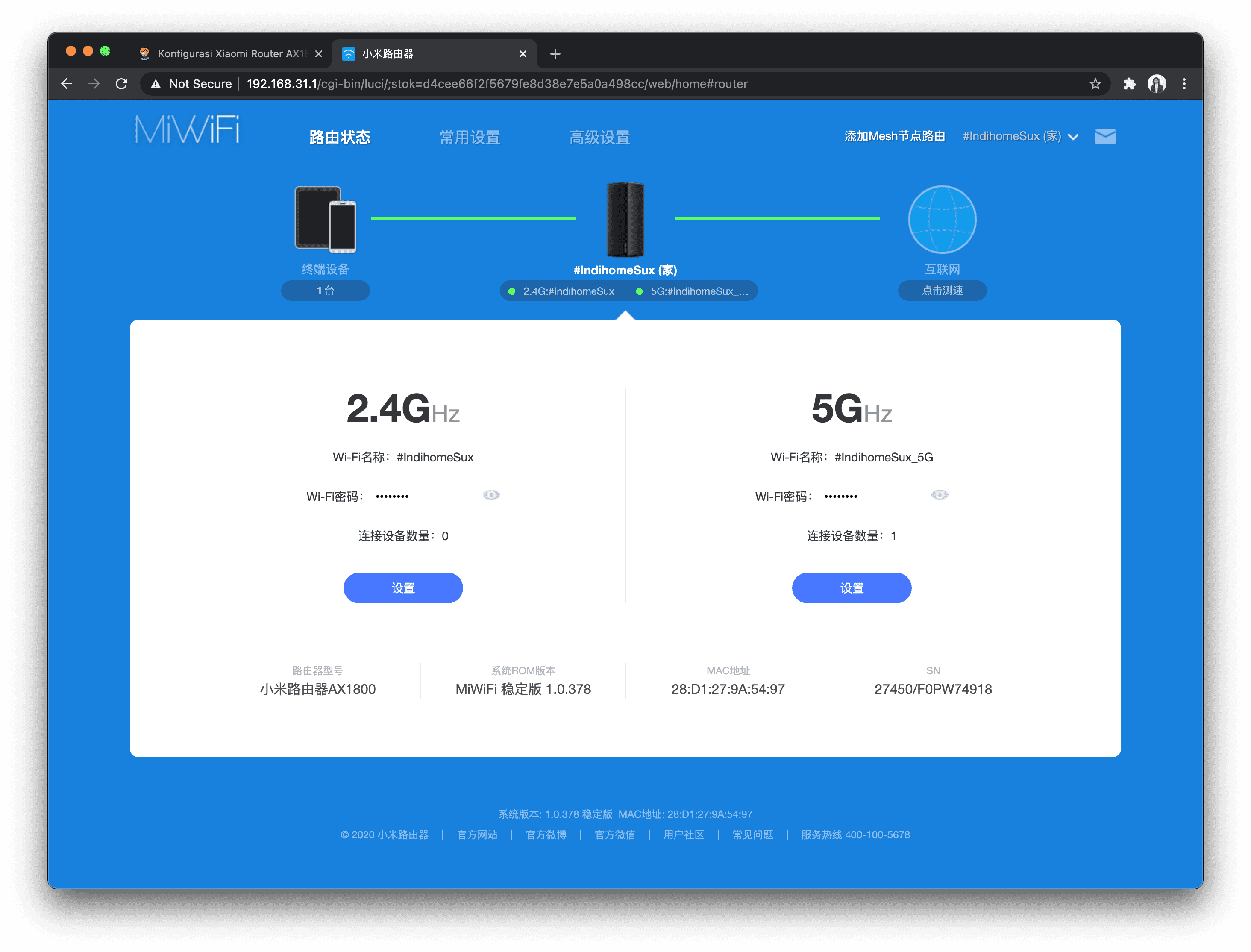 Setelah kamu menyalakan router, di HP atau di komputer kamu akan melihat ada 2 wifi yang bernama Xiaomi. Lakukan koneksi ke salah satu SSID tersebut lalu akan muncul tampilan seperti berikut :