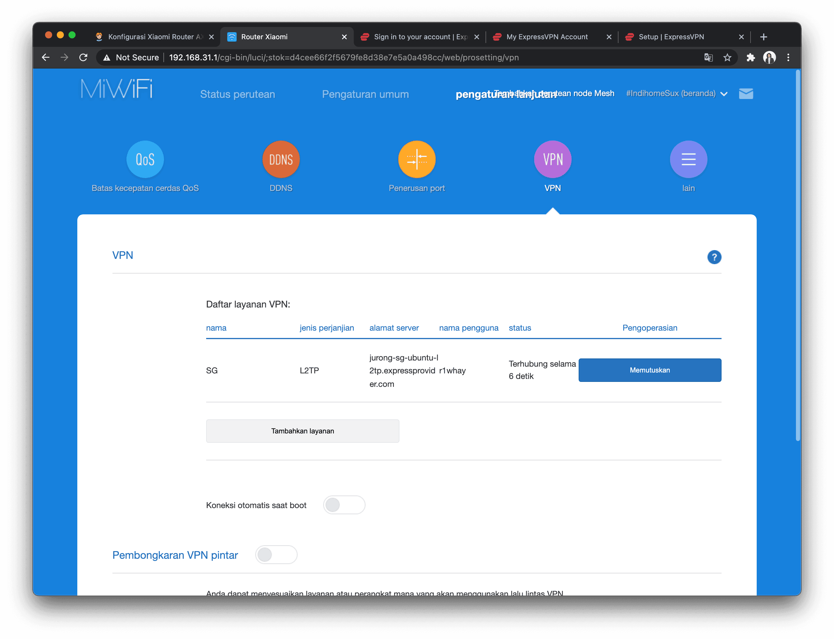 Di artikel ini saya akan berbagi mengenai proses konfigurasi Xiaomi Router AX1800 + ExpressVPN untuk mengatasi masalah throttling yang dilakukan oleh Indihome. Kenapa ExpressVPN? Saya selama ini sebenarnya langganan Surfshark, tapi kemarin saya coba menghubungkan Surfshark dengan router ga berhasil, sepertinya ga kompatibel. Ketika saya coba ExpressVPN, semuanya baik-baik aja dan bekerja, jadi itu kenapa di artikel ini saya menyarankan ExpressVPN.