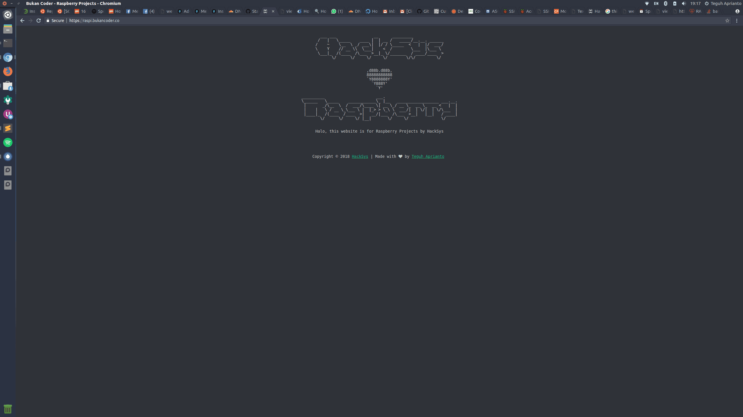 <center> <pre><br>Copyright © 2018 <a href="https://hacksys.id">HackSys</a> | Made with <span class="fa fa-heart pulse2"></span> by <a href="https://teguh.co">Teguh Aprianto</a> </pre></center>