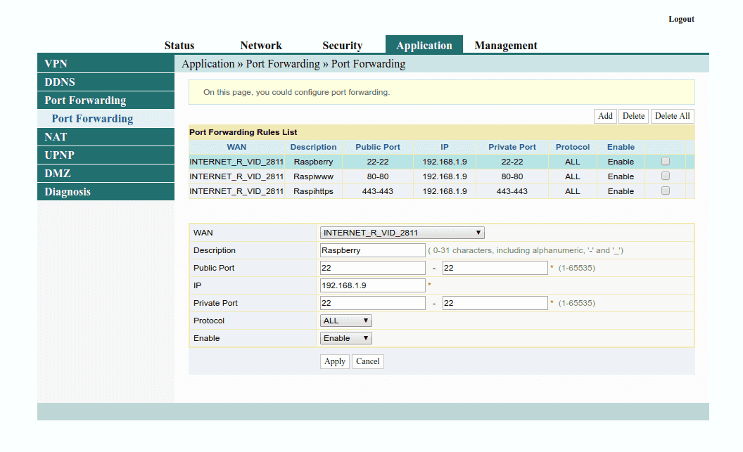Untuk pengguna indihome silahkan login melalui http://192.168.1.1/ setelah login langsung ke Application -> Port Forwarding.