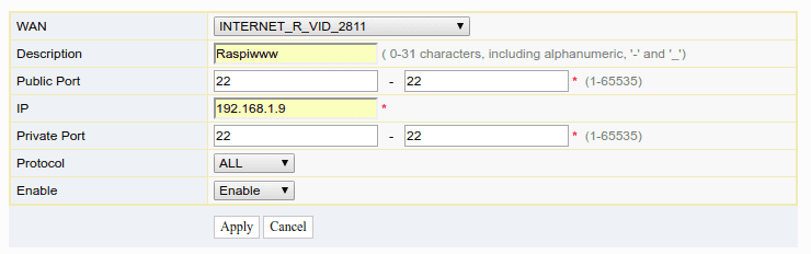 Lalu kemudian kita login ke modem admin panel untuk konfigurasi port forwarding. Berikut port yang akan kita gunakan :